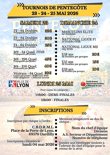 Depuis plus dâun siĂšcle, ces tournois attirent des milliers de joueuses et joueurs venus de toute la rĂ©gion â un vĂ©ritable rendez-vous annuel qui cĂ©lĂšbre notre passion pour la boule lyonnaise.